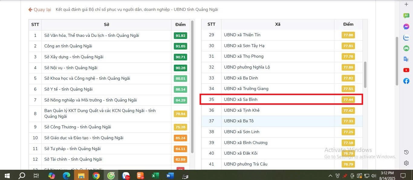 Trung tâm Phục vụ Hành chính công xã Sa Bình vừa ghi dấu một bước tiến vượt bậc khi nâng thứ hạng Bộ chỉ số phục vụ người dân và doanh nghiệp từ vị trí 77/96 lên 35/96 xã, phường trên toàn tỉnh Quảng Ngãi. Thành tích này giúp xã Sa Bình vươn lên top dẫn đầu.