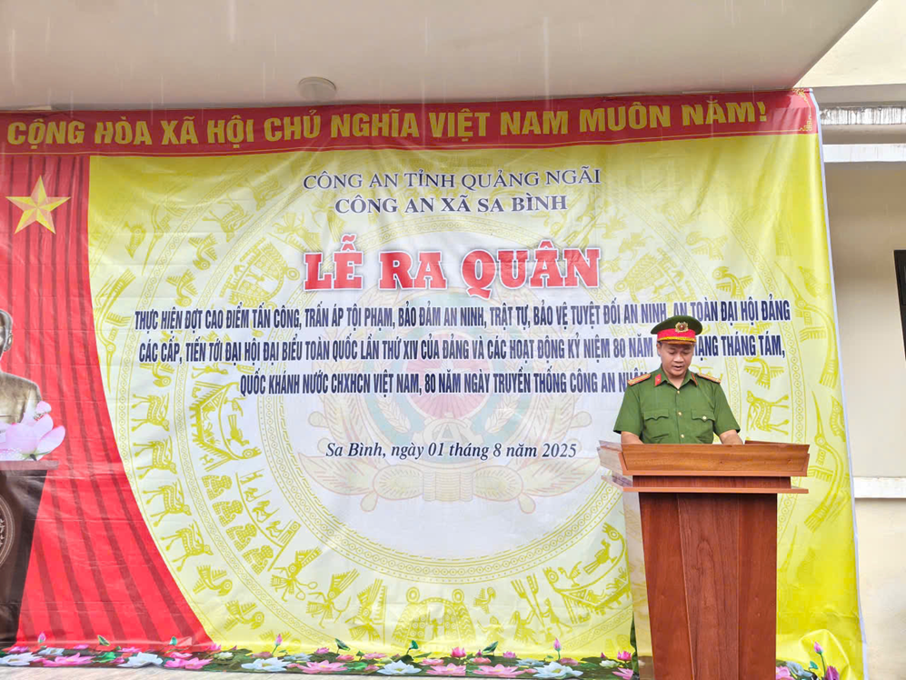 Sáng ngày 01/8/2025, Công an xã Sa Bình tổ chức Lễ ra quân tấn công, trấn áp tội phạm, đảm bảo an ninh trật tự (ANTT) trên địa bàn. Đây là hoạt động trọng điểm nhằm bảo vệ an toàn tuyệt đối Đại hội Đảng các cấp, hướng tới Đại hội đại biểu toàn quốc lần thứ XIV của Đảng, đồng thời là hoạt động thiết thực chào mừng kỷ niệm 80 năm Cách mạng Tháng Tám (19/8/1945 – 19/8/2025) và Quốc khánh nước Cộng hòa xã hội chủ nghĩa Việt Nam (02/9/1945 – 02/9/2025).