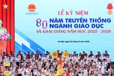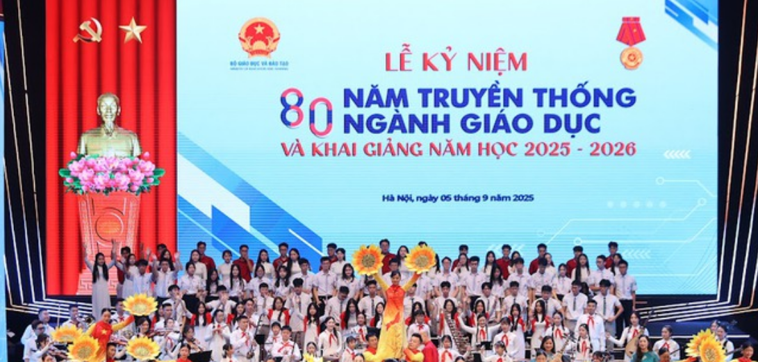 Sáng 09/05/2025, Lễ kỷ niệm 80 năm truyền thống ngành Giáo dục và khai giảng năm học mới 2025-2026 diễn ra từ 8h00 đến 9h30, được truyền hình trực tiếp trên kênh VTV1 và kết nối trực tuyến tới tất cả các cơ sở giáo dục, đào tạo trên cả nước. Chương trình có sự tham dự của các đồng chí lãnh đạo cấp cao của Đảng, Nhà nước, Quốc hội, Chính phủ, Ủy ban Trung ương MTTQ Việt Nam, đại diện các ban, bộ, ngành, địa phương; các vị đại sứ, tổ chức quốc tế tại Việt Nam; lãnh đạo và nguyên lãnh đạo Bộ GD&ĐT; cùng sự hưởng ứng trực tiếp và trực tuyến của khoảng 1,7 triệu thầy cô giáo và gần 30 triệu học sinh, sinh viên trên toàn quốc.